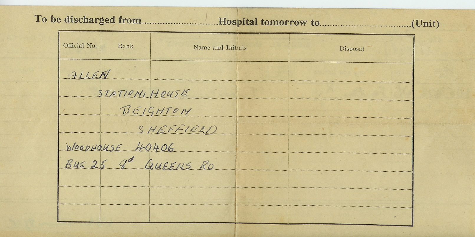 Following this rehabilitation, it states on Ken’s service record that he was attached to 104PDC (Personnel Despatch Centre, Hednesford, Nr. Cannock, Staffordshire) on 16th October 1945, when he would have received his official discharge.