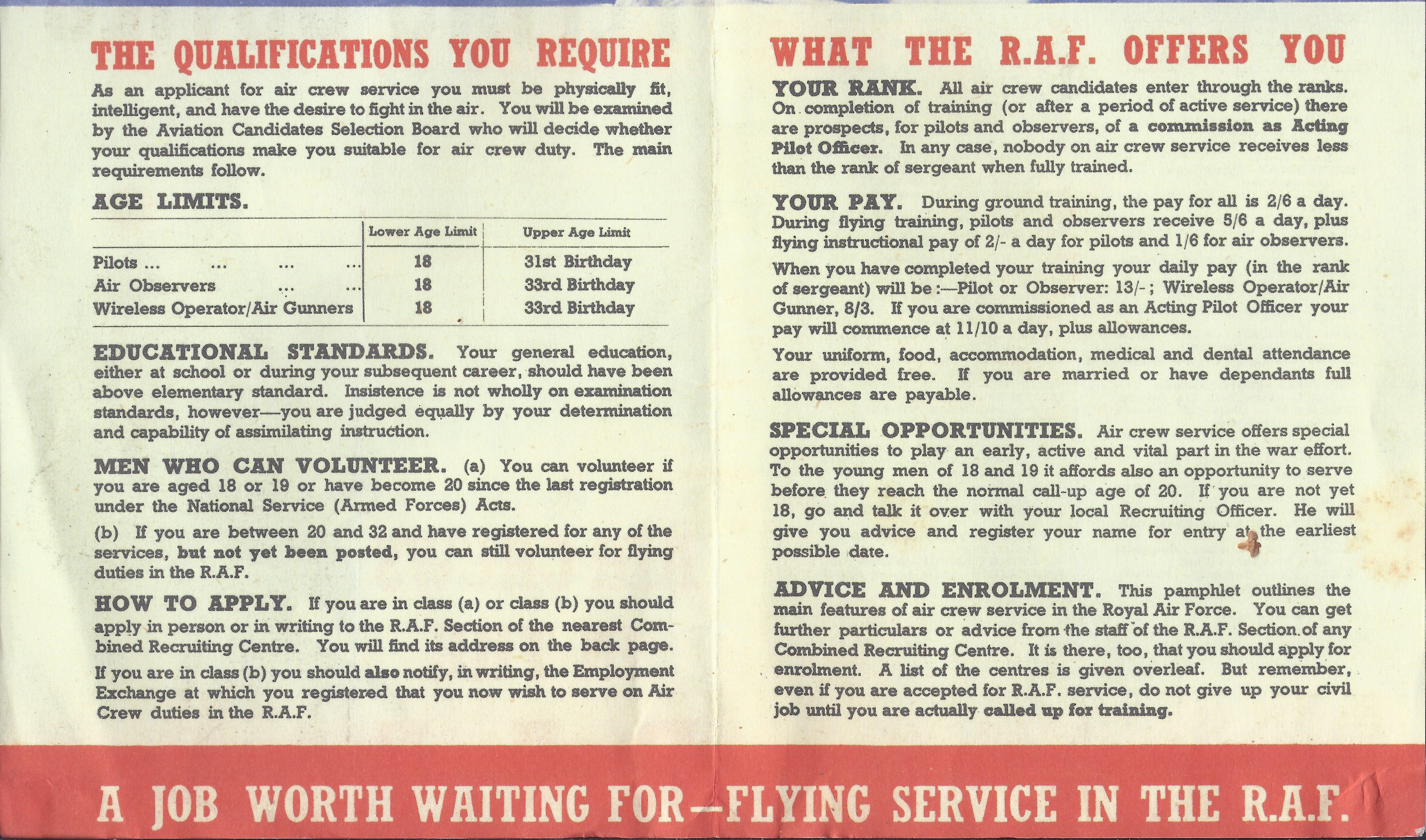 There were various propaganda posters and leaflets that encouraged the young volunteers to join the RAF, promising opportunities, learning a trade and excitement. Noel Monk wrote two booklets, ‘Taking Off’ and ‘With the RAF’. It is of note that the Army version was ‘Eyes Right! The Army of To-Day’ by Captain A. O. Pollard, V.C., M.C., D.C.M. to distance themselves from the Old Army of the First World War.