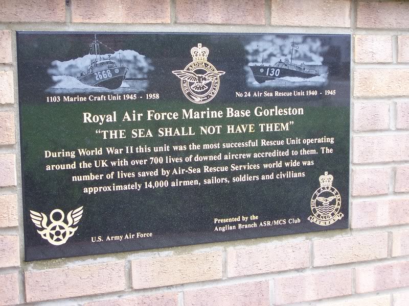 Gorleston 24 Air Sea Rescue unit, RAF memorial on Brush Quay opposite the Pier Hotel.