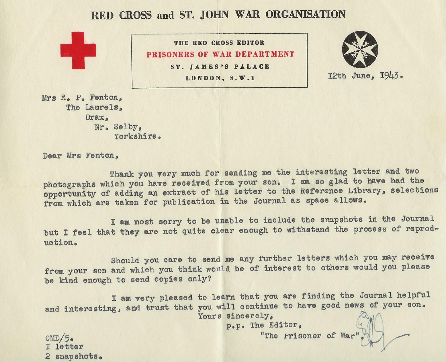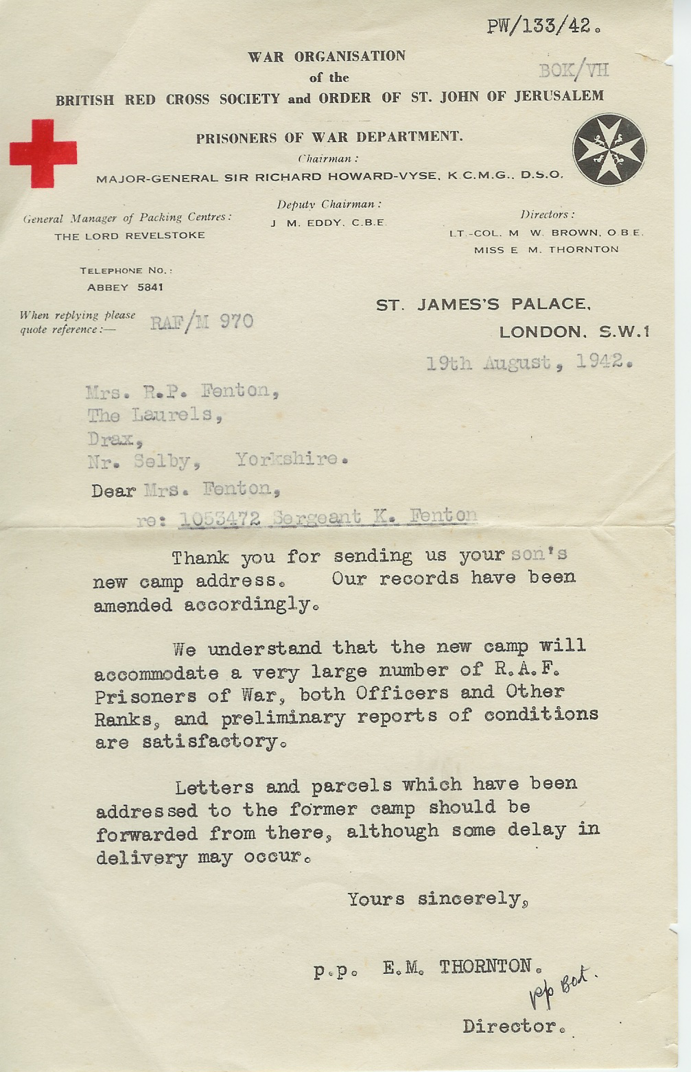 A few weeks after being taken prisoner, l met a fellow who was on your son’s squadron, and he confirmed that the plane had been shot down over the sea and that there were no survivors. Dear Madame, accept on behalf of my crew and myself my deepest sympathy in your bereavement for a son who died upholding the traditions of the RAF. Overill and myself are fit and well. I do so hope that you and your family are the same.